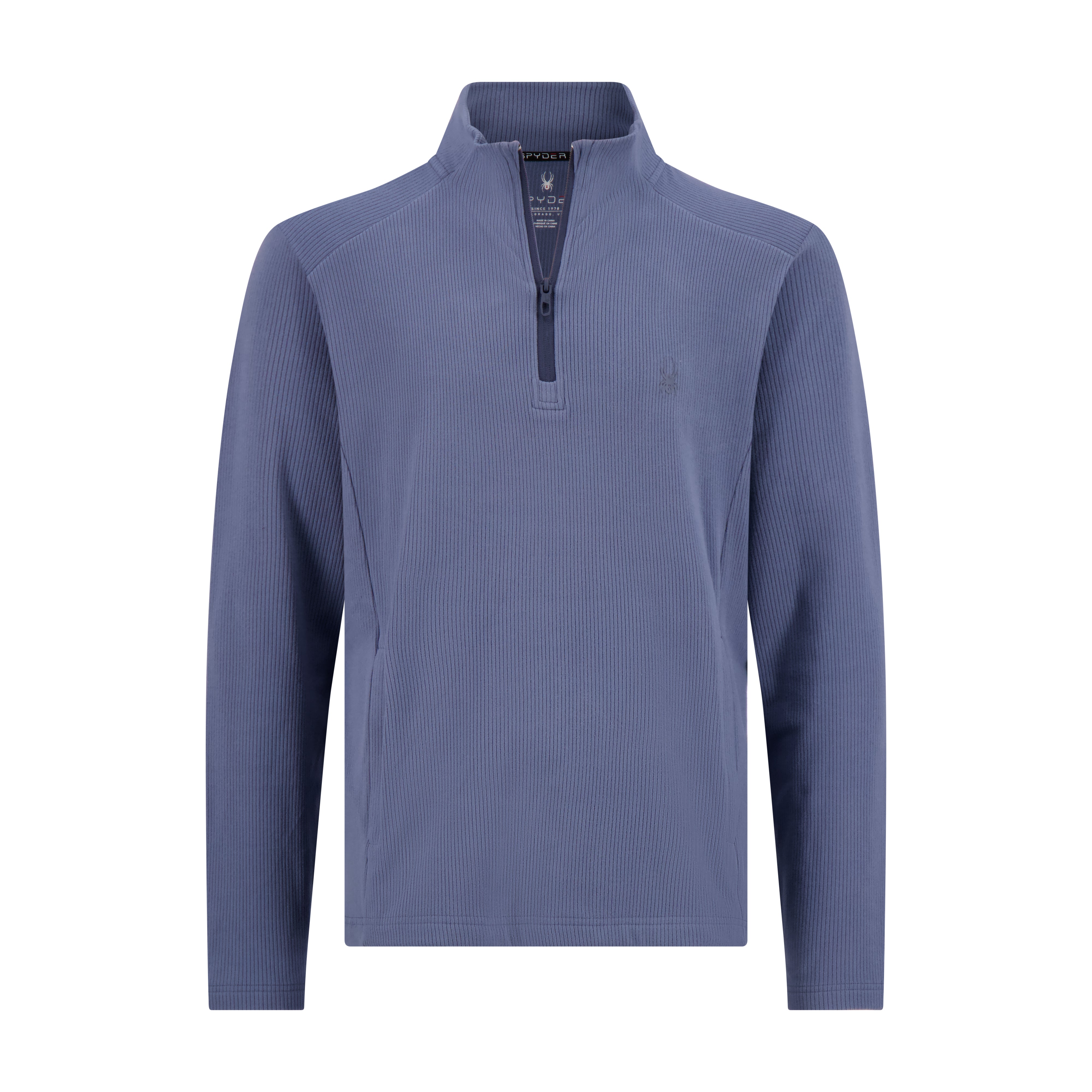 The Corduroy Double Knit 1/4 Zip is constructed from a double knit fabric with a corduroy texture that provides warmth and structure in cool conditions. It features a center-front zipper closure, zippered side pockets, high-density heat-transfer branding, and logo neck tape. The polyester-spandex blend delivers 4-way stretch and UPF 30 protection, and the piece is machine washable for easy care.
