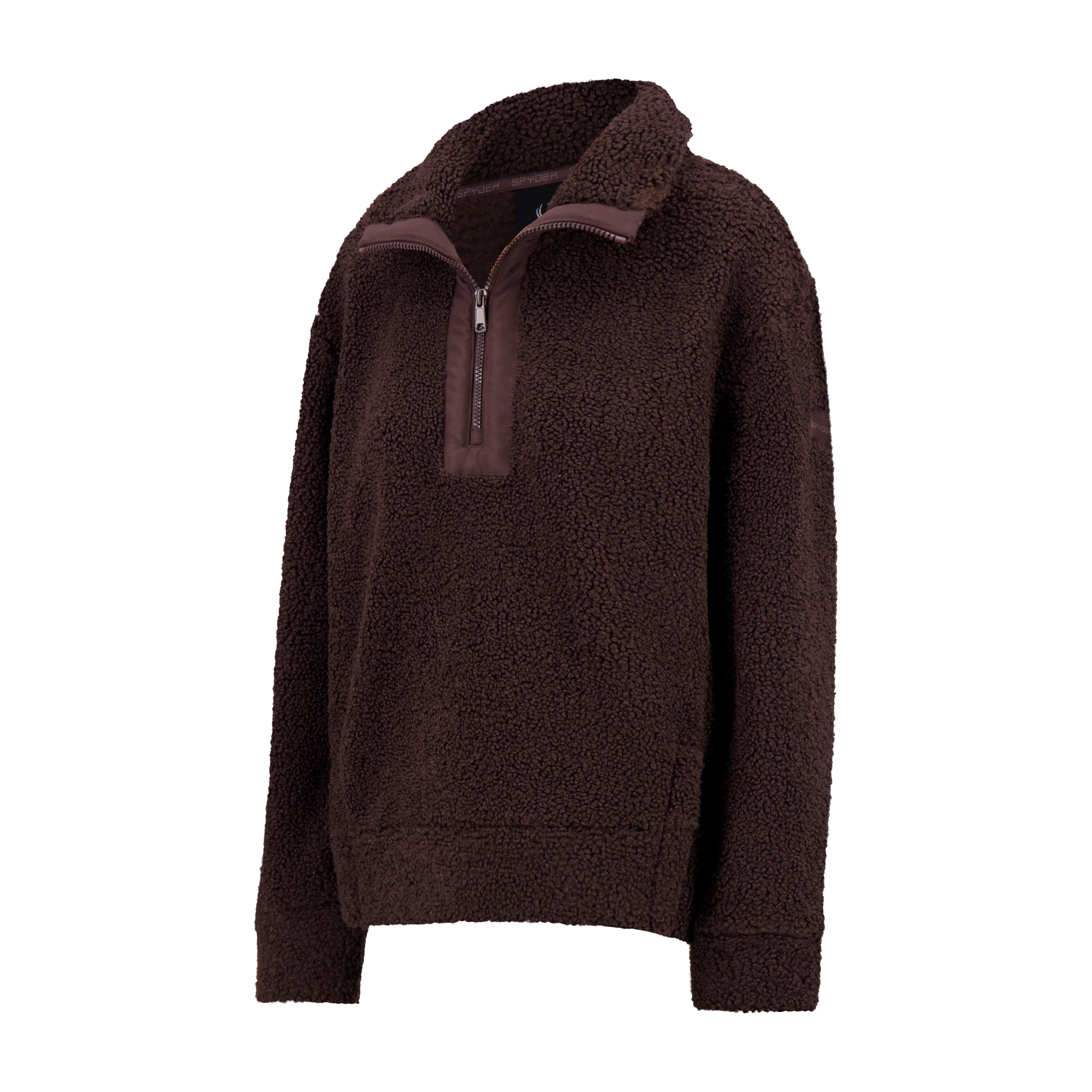 Womens Sherpa Quarter Zip Mock Neck - Cocoa