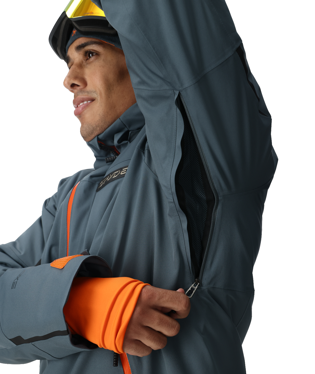 The Leader has been a pillar in the Spyder line for decades. This jacket features 4-way stretch EXO SHIELD 30K/20K fabric, which provides high-level protection and functionality. It's warm and waterproof with 100 grams of PrimaLoft® Black ECO insulation and sealed seams. The Leader jacket excels on the slopes with thoughtful details like a removable helmet-compatible hood, YKK® AquaGuard® zippers, and underarm ventilation.