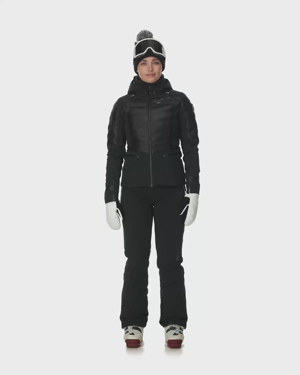 Experience the peak of elegance and technical excellence. The body fabric of the all-new Granada features EXO SHIELD 30K, a specialized Spyder fabric boasting 30K/30K waterproofing/breathability and Durable Water Repellent for high performance. We placed welded baffles filled with 60 grams of synthetic down PrimaLoft® Gold ECO insulation in the core to enhance warmth and prevent cold spots, while the interior velour stretch panels let you move with ease. Paired with YKK® underarm ventilation zippers, you can dump heat quickly in high-output moments. The Granada also features waterproof YKK® AquaGuard® exterior zippers, fully taped seams, an adjustable and removable hood, a removable snap-back powder skirt, and RECCO® Avalanche Rescue System. The Granada is an ideal choice for those seeking elegance and performance.