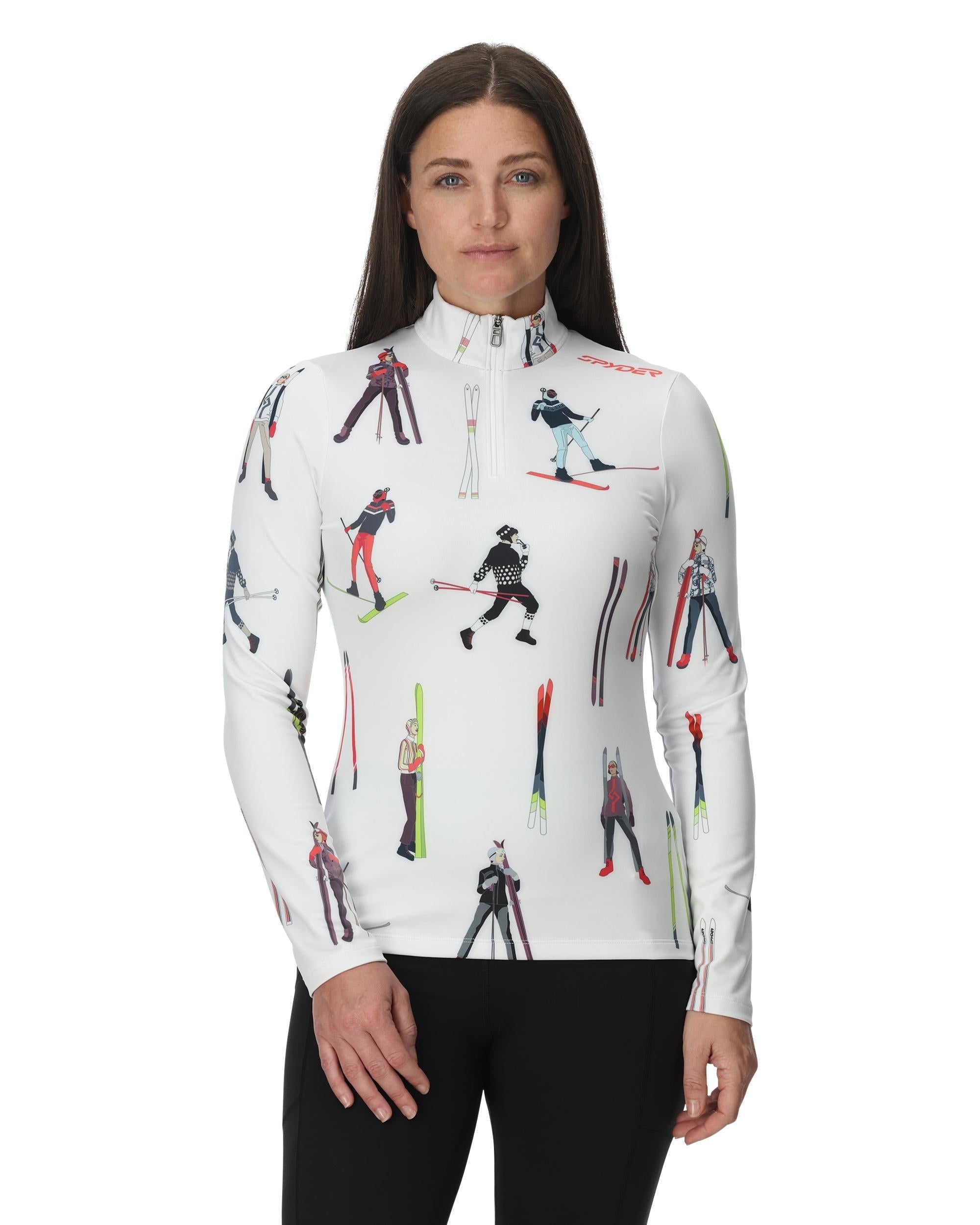 The custom Spyder prints on the Vivid 1/2 zip t-necks feature unique designs that can go with nearly any outfit. This stretch polyester/elastane t-neck is an ideal moisture-wicking layer while out on the mountain or as a light layer doing any sporty activity.