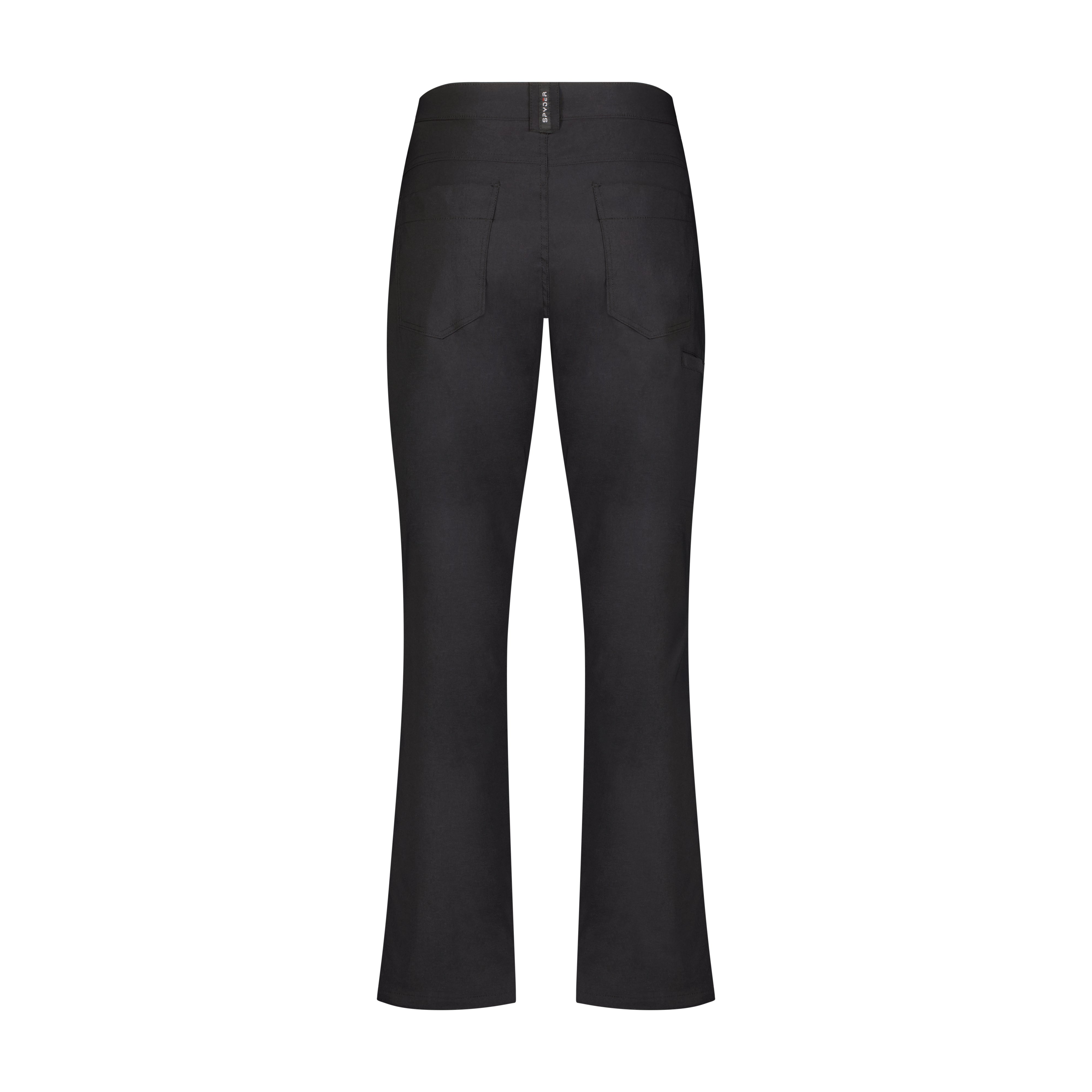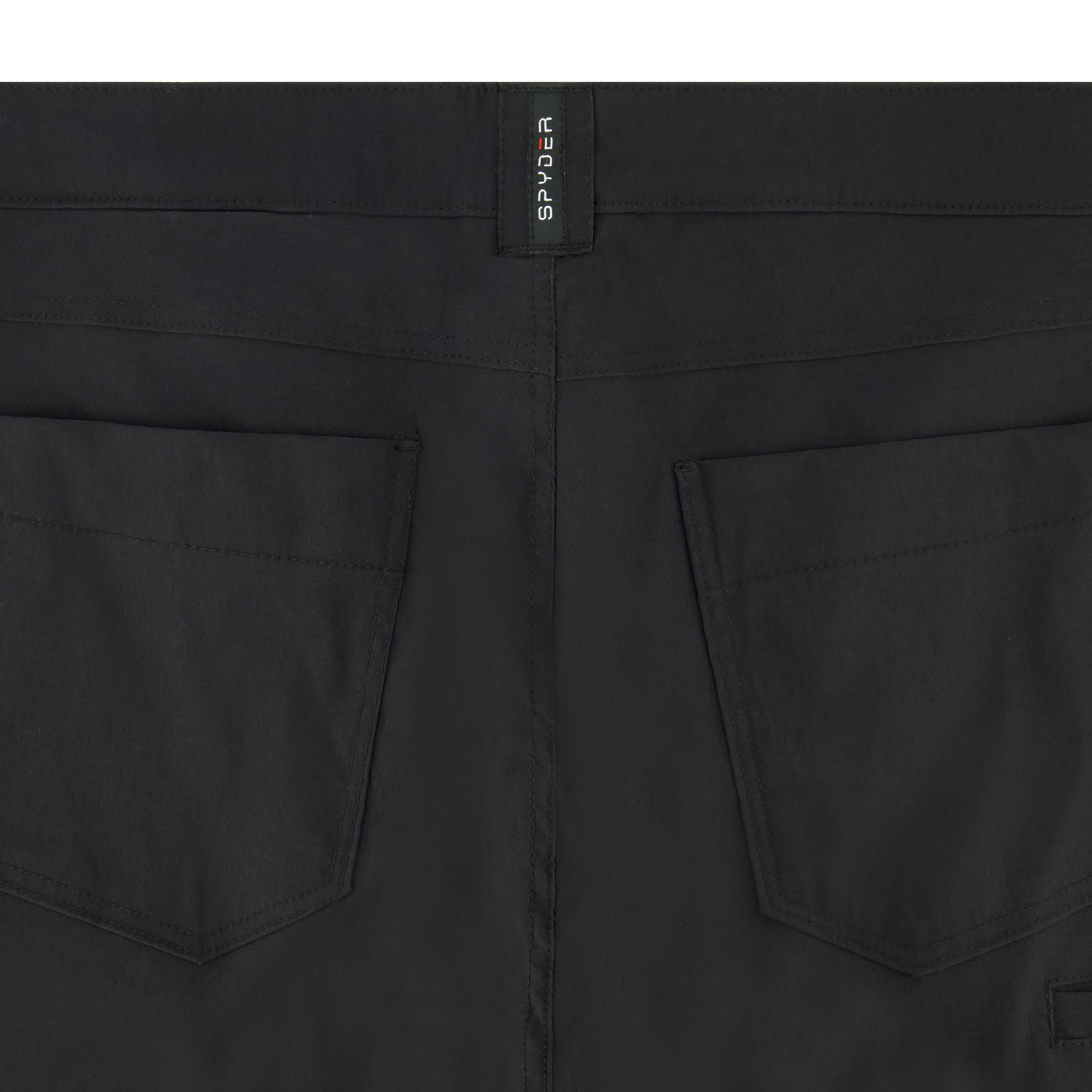 The Fleece Lined Tech Woven Five Pocket Pant combines a durable woven outer shell with a soft fleece lining for added warmth in cooler conditions. It features a classic five-pocket design with a metal shank button, a media pocket on the back left leg, and a woven label on the back right pocket. The nylon-spandex shell provides 2-way stretch, water resistance, and UPF 30 protection, while the fleece lining adds insulation, and the pant is machine washable for easy care.