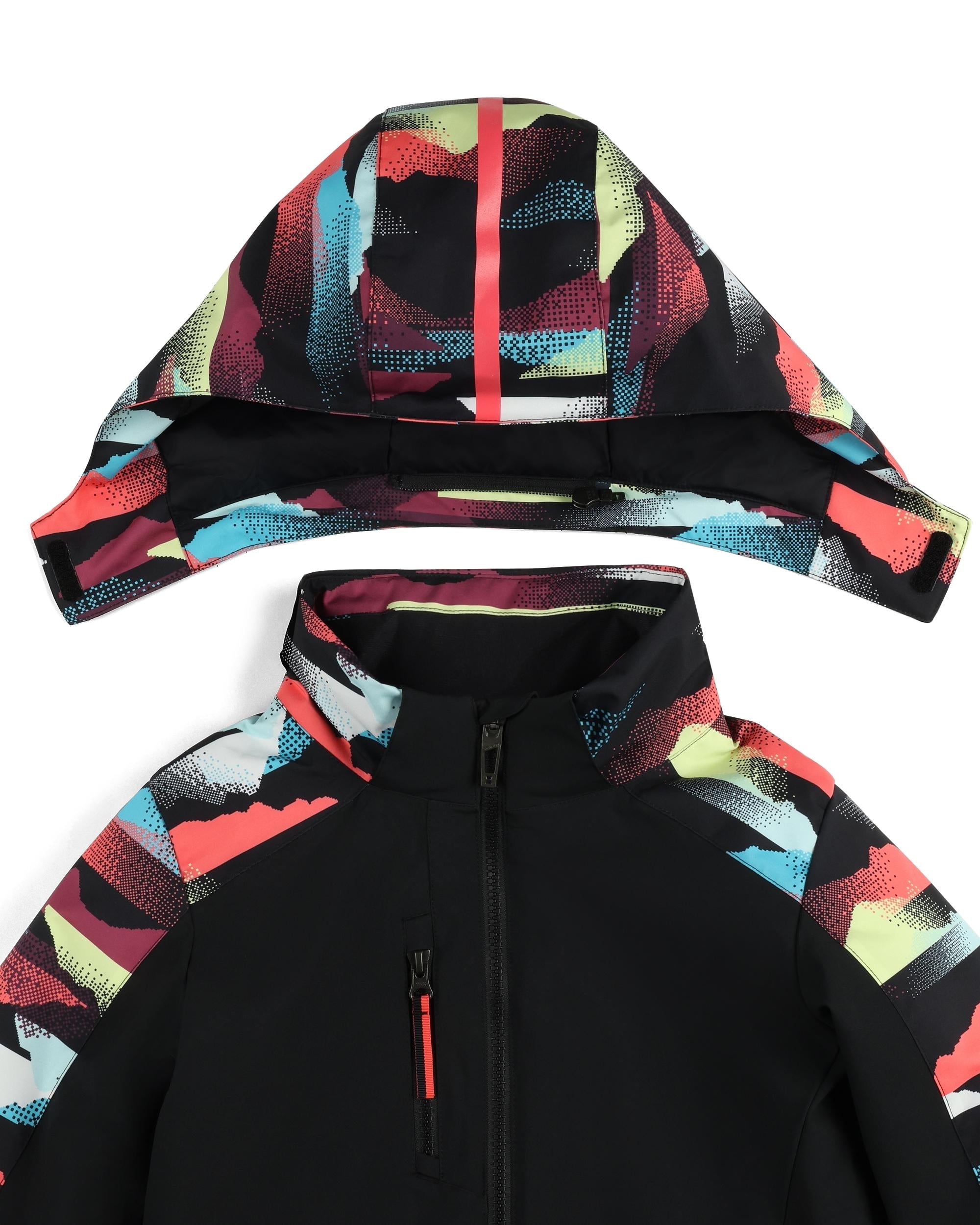 Modeled after our women's jackets, the Mila jacket is the real deal. It features EXO SHIELD 10K stretch recycled polyester and 120 grams of Sorona® insulation with pops of color in black, plum, or cyan blue colorways. With plenty of YKK® zippered pockets to store everything from a phone to extra snacks and a ski pass, the Mila is just as unstoppable as the girls who wear it.