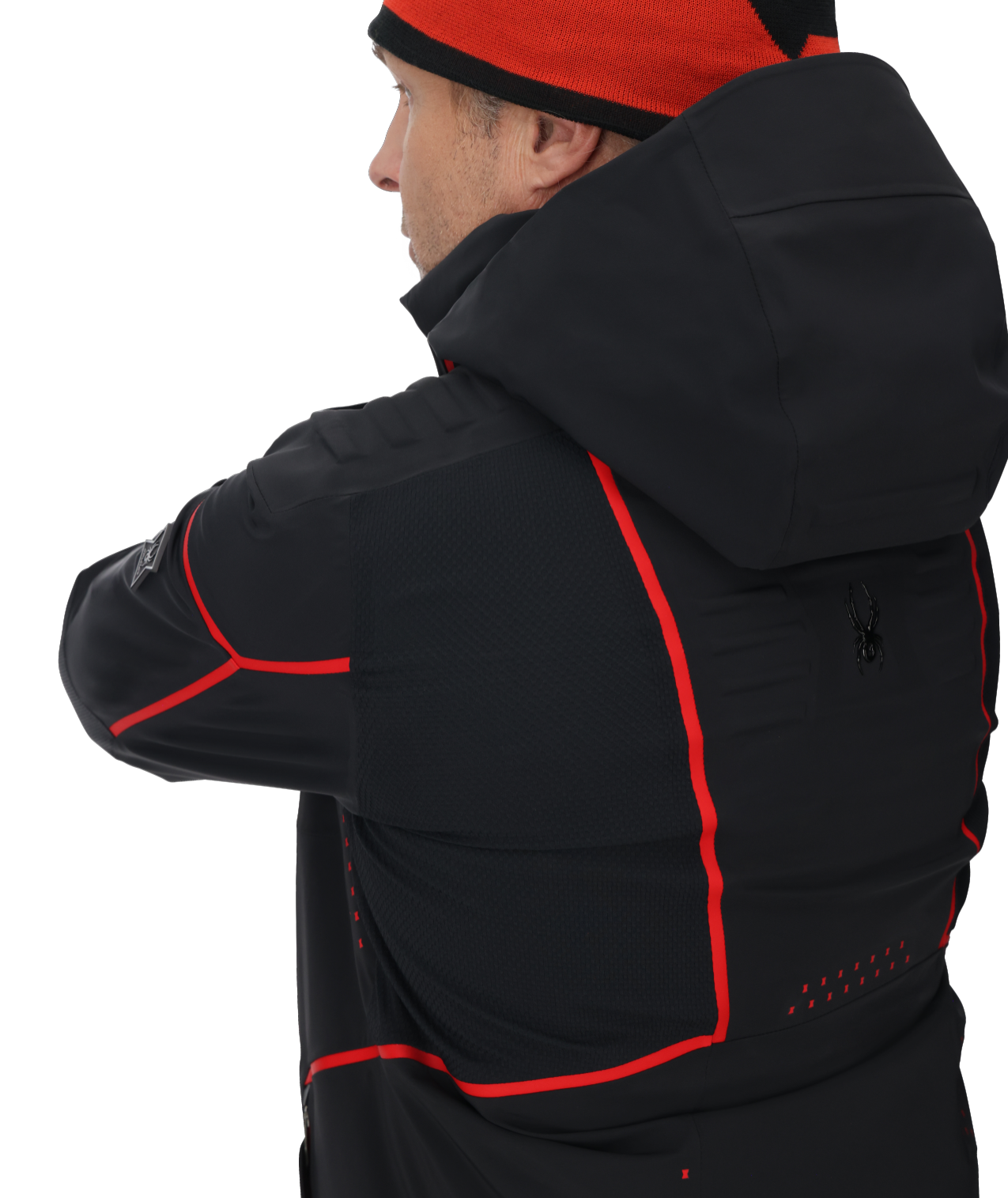 Experience engineered elegance and technical excellence. The Pinnacle is a perennial favorite, and we continue to innovate this premier jacket. The body fabric features EXO SHIELD 30K, a proprietary Spyder fabric boasting 30K/30K waterproofing/breathability and 4-way stretch for freedom of movement.  Filled with 60 grams of synthetic down PrimaLoft® Gold ECO insulation in the core enhance warmth and prevent cold spots. Easily accessed waterproof core ventilation zippers allow you to dump heat quickly in high-output moments. Two-way high-stretch panels on the back and shoulders and a full-stretch interior provide unparalleled mobility. The Pinnacle features waterproof YKK® AquaGuard® zippers, fully taped seams, an adjustable and removable hood, a powder skirt, and RECCO® Avalanche Rescue System.
