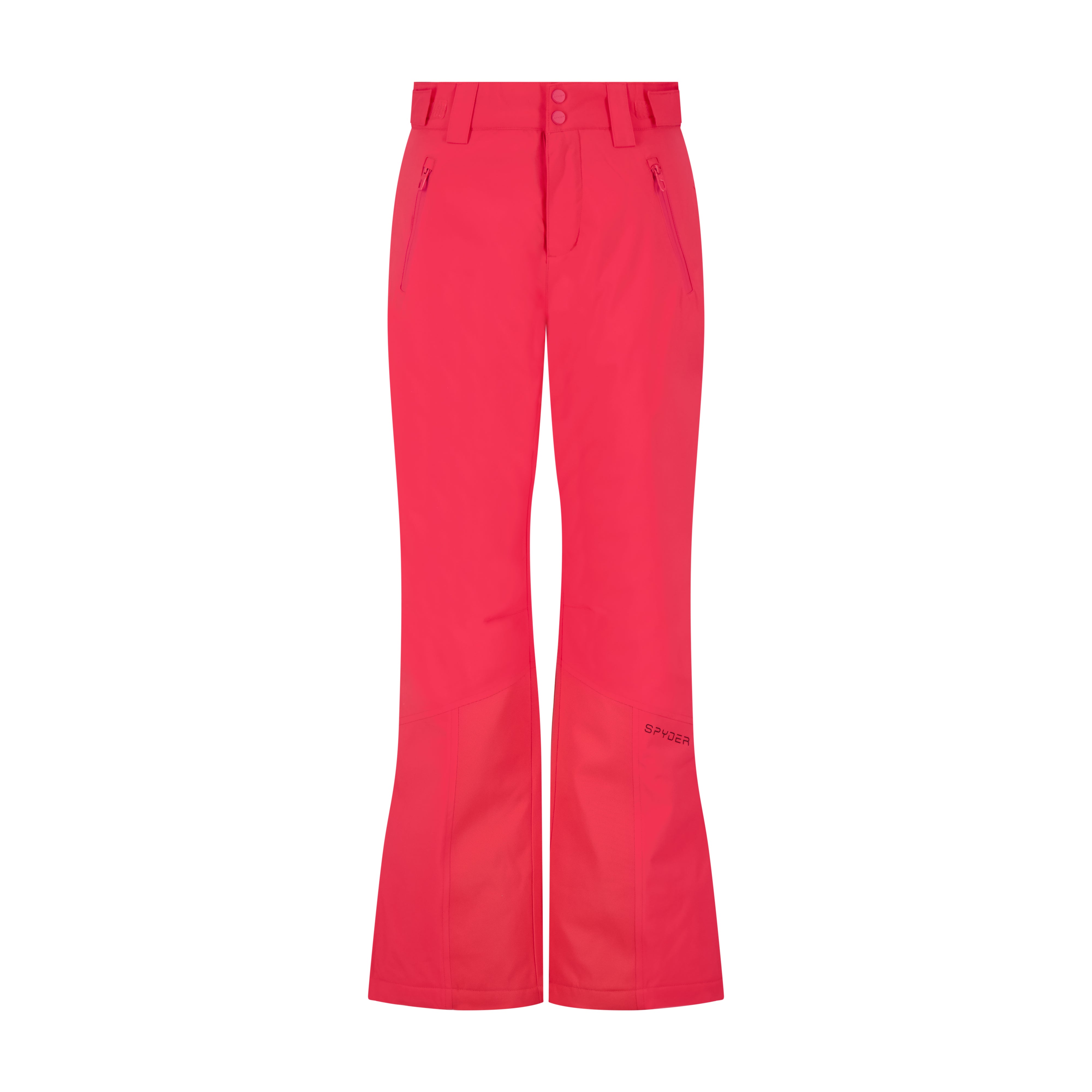 The Snow Pant is constructed with Dewspo fabric featuring film bonding and ripstop paneling for durability and weather protection. It includes a reversed coil zipper with a Spyder metal snap front closure, adjustable waist tabs with Velcro, waterproof zip hand pockets with Spyder metal pullers, and reversed coil zip back pockets. Snow cuffs with Spyder logo gripper tape and a raised 3D Spyder wordmark on the front complete the design, with waterproof, wind-resistant, and critically seam-sealed performance built in.
