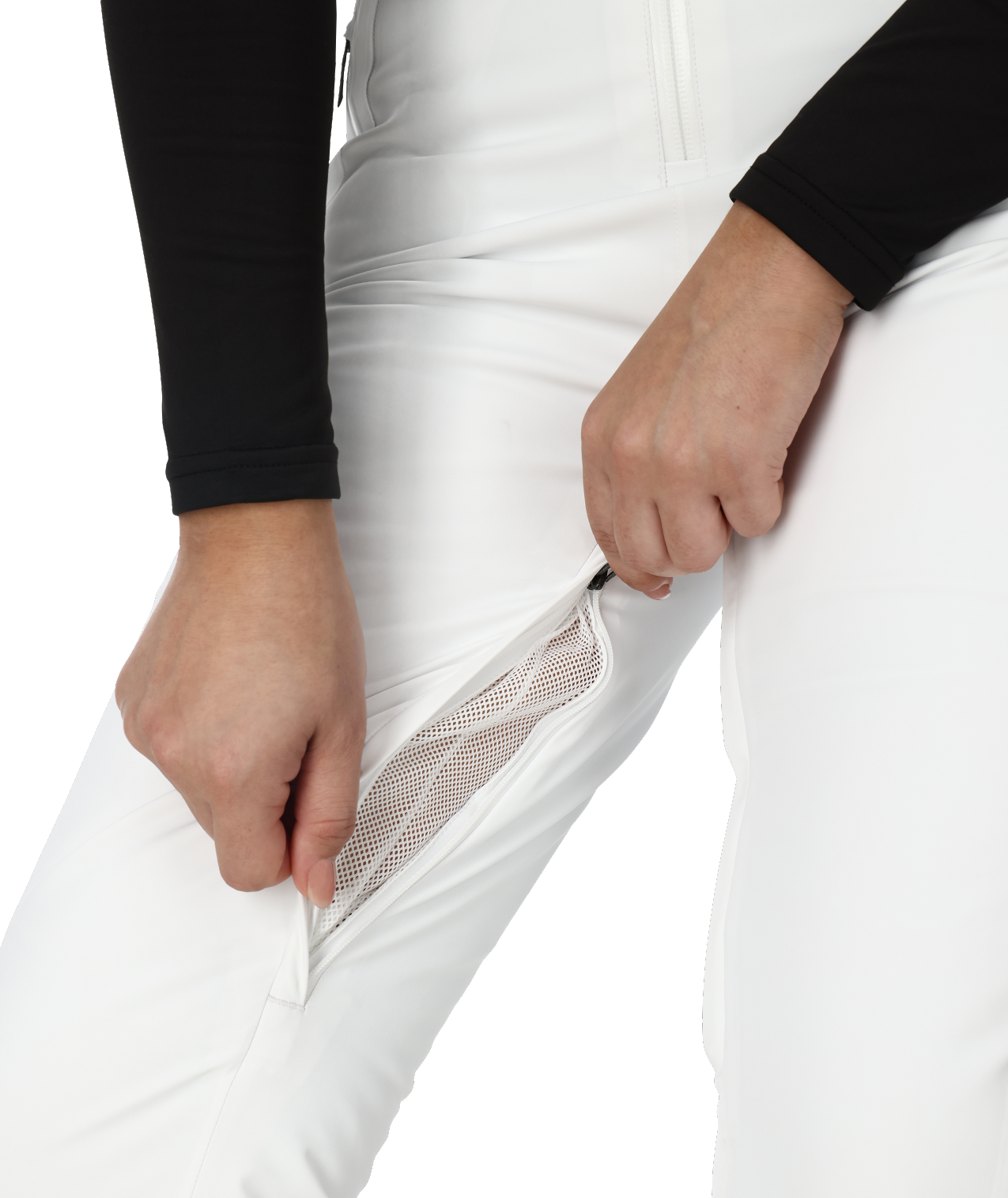The On-Piste melange bib pants are designed by a women-led team specifically for women skiers. Blending style and functionality, the detachable insulated vest creates a sealed one-piece design. You can also detach the vest for a classic ski pant or wear the vest as a stand-alone layer. Built with Spyder’s EXO SHIELD 30K/30K fabric, this bib offers high performance in waterproofing and breathability, mobility, and warmth with 80 grams of PrimaLoft® Silver ECO insulation. Finished with elegant YKK® AquaGuard® zippers and a metal front buckle, punctuating the On-Piste’s feminine-focused functionality.