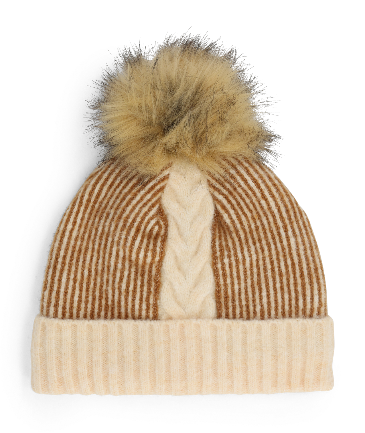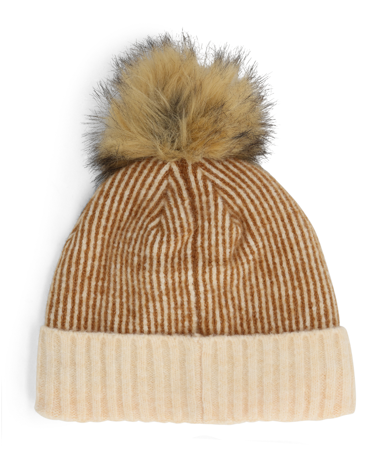 This refined beanie features a faux fur pom on top and goes beautifully with any outfit.