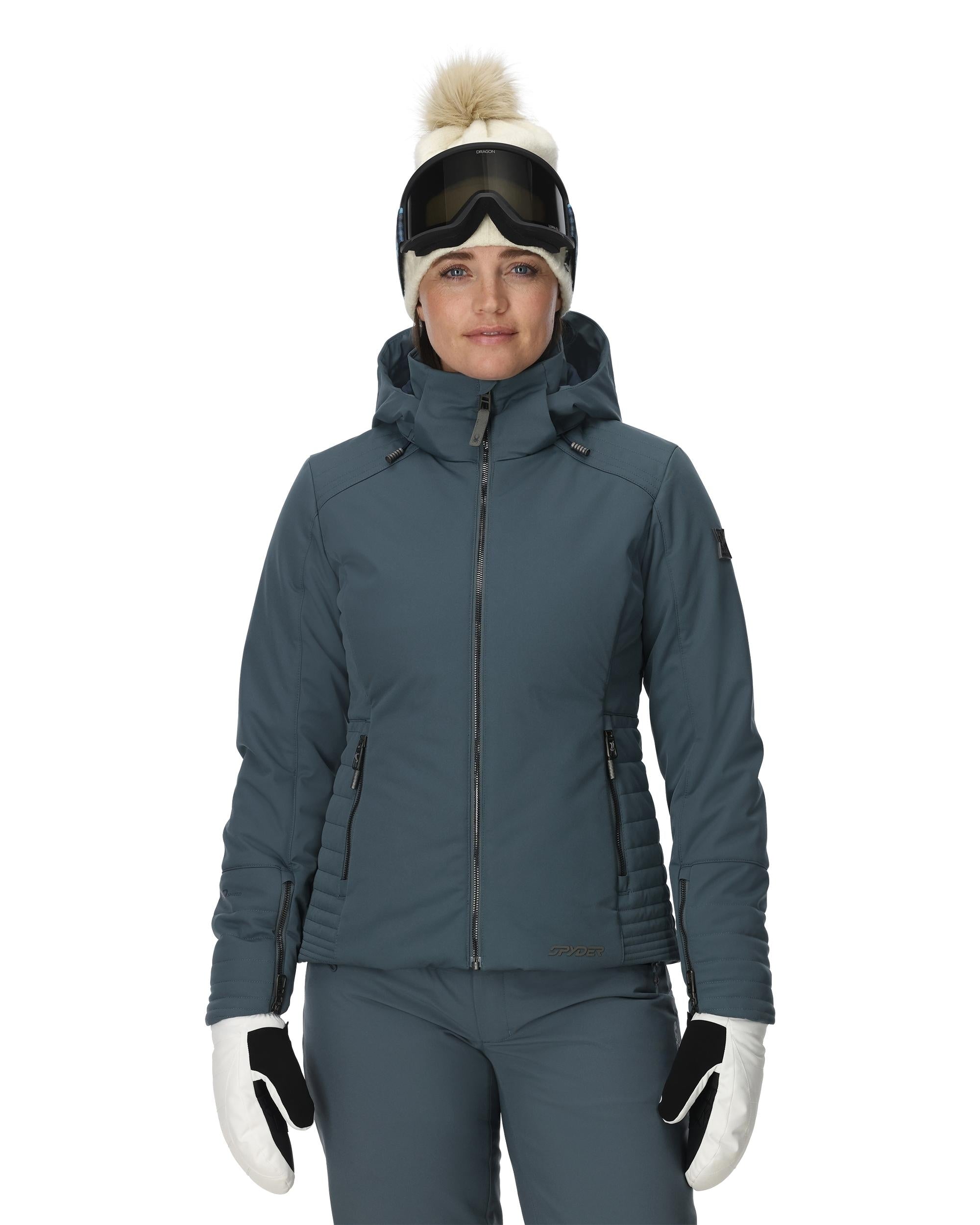 The Schatzi delivers mountain-ready technologies in a modern design. Spyder’s proprietary 4-way stretch EXO SHIELD fabric moves with you, providing 30K/20K waterproofing from the elements and 80 grams of PrimaLoft® Silver ECO to insulate and protect. Underarm vents with mesh backing provide custom climate control, and an adjustable hood can be removed for a more refined look.