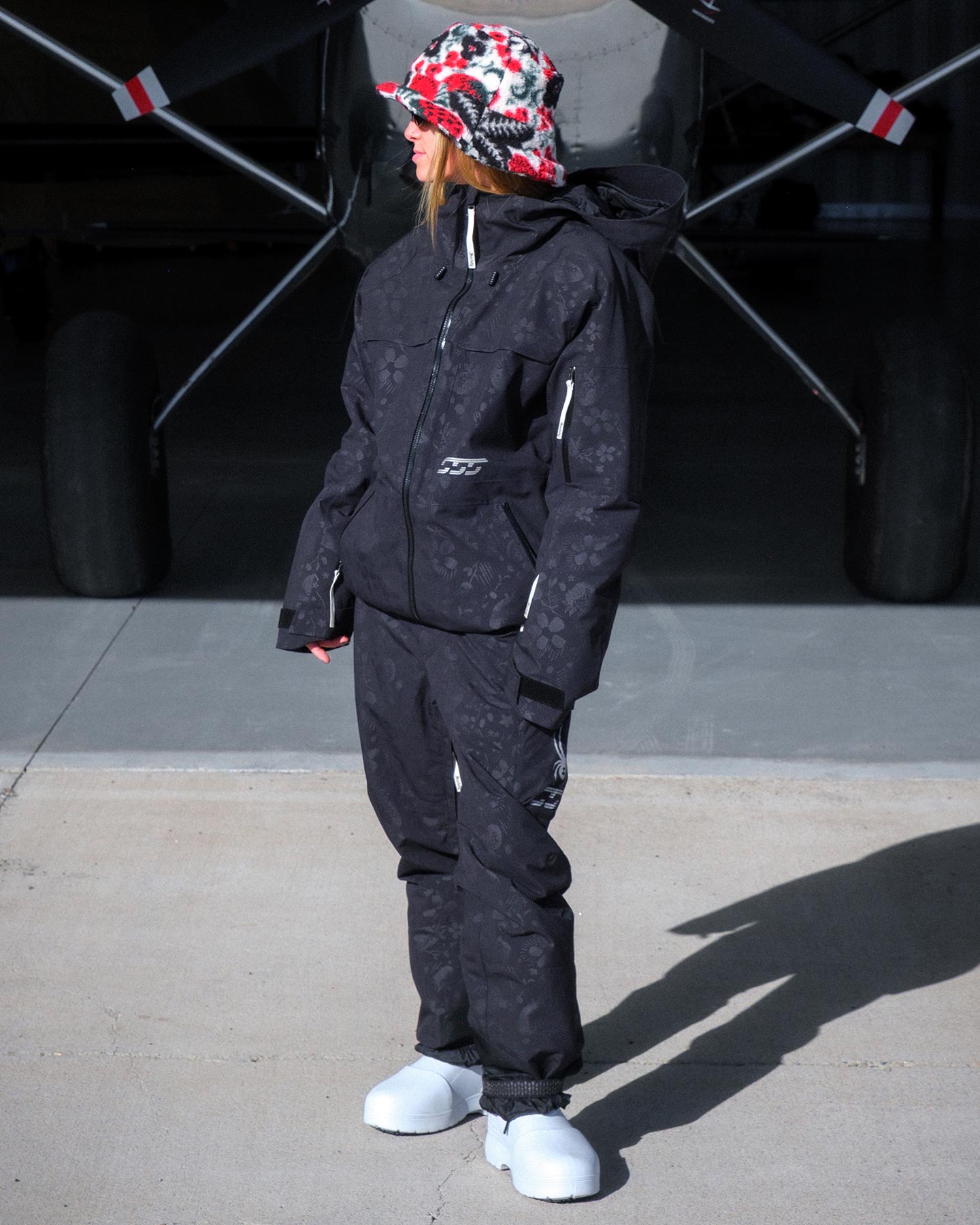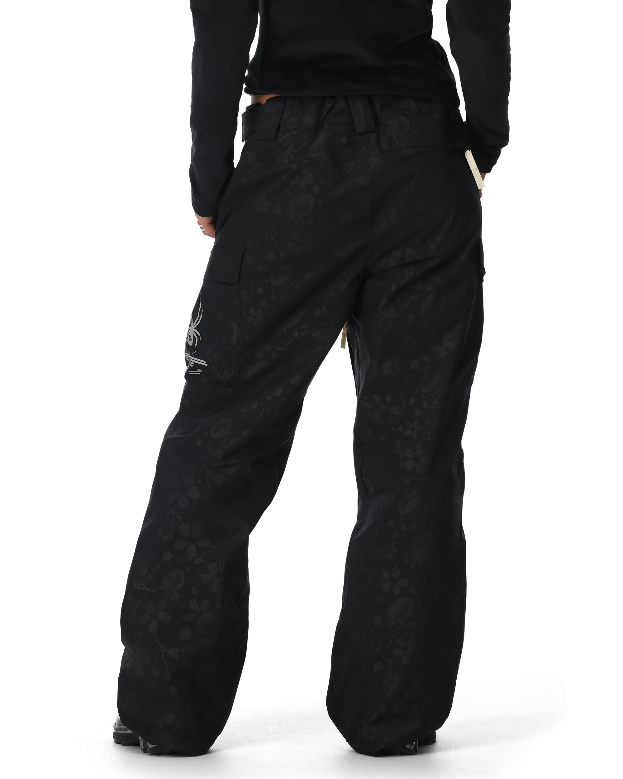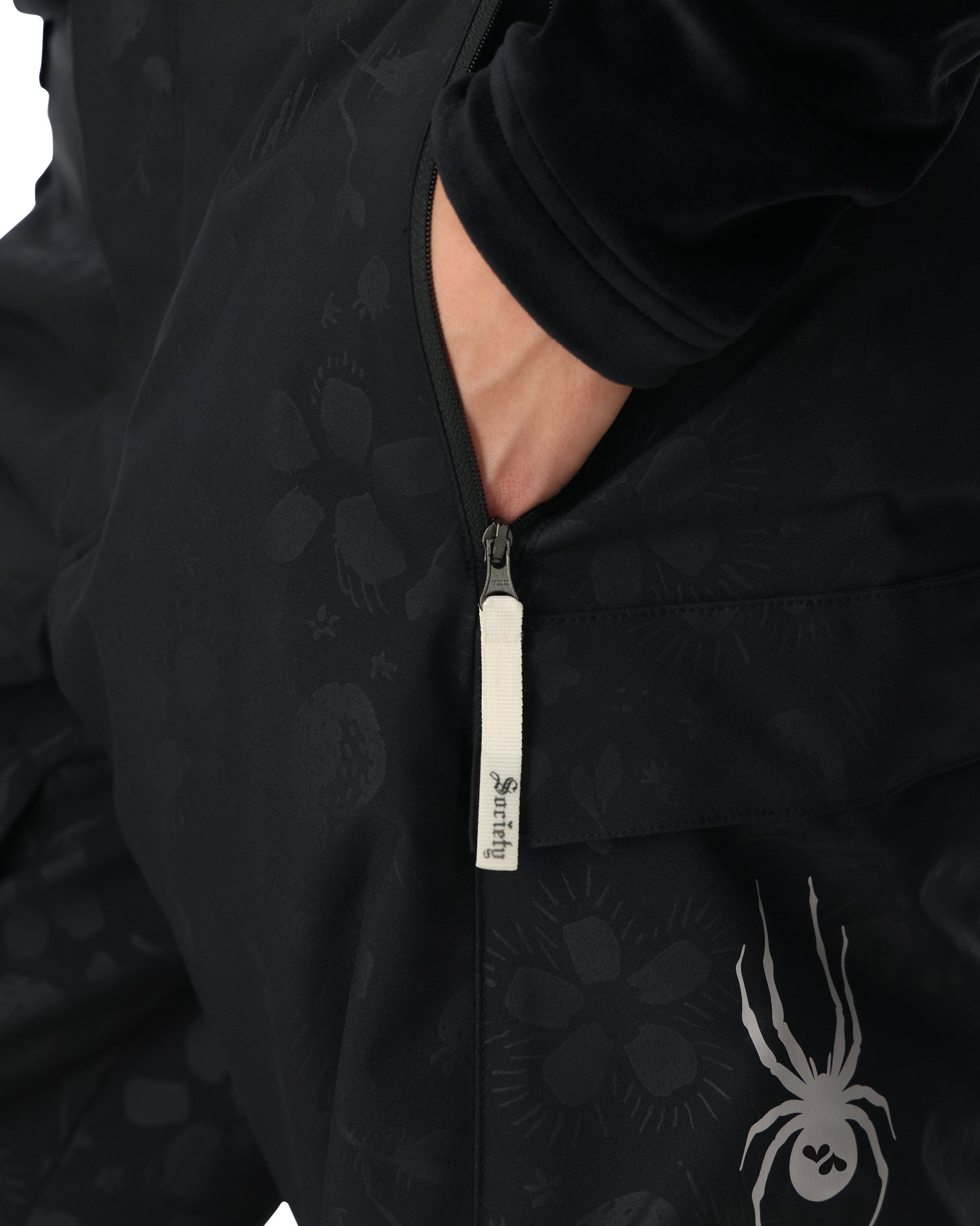 The Society Lift pants have the same features as our inline Lift Pants with some added touches for the girls. The EXO SHIELD 20K laminate keeps moisture out while the targeted 40 grams of Sorona® insulation and thigh ventilation system help keep you the perfect temperature. The articulated knee, interior stretch panels, and adjustable waist ensure comfort and that baggy pant look. The custom embossed tonal print was hand drawn by Elsa Grace and brings a subtle pop to a timeless black on black outfit.