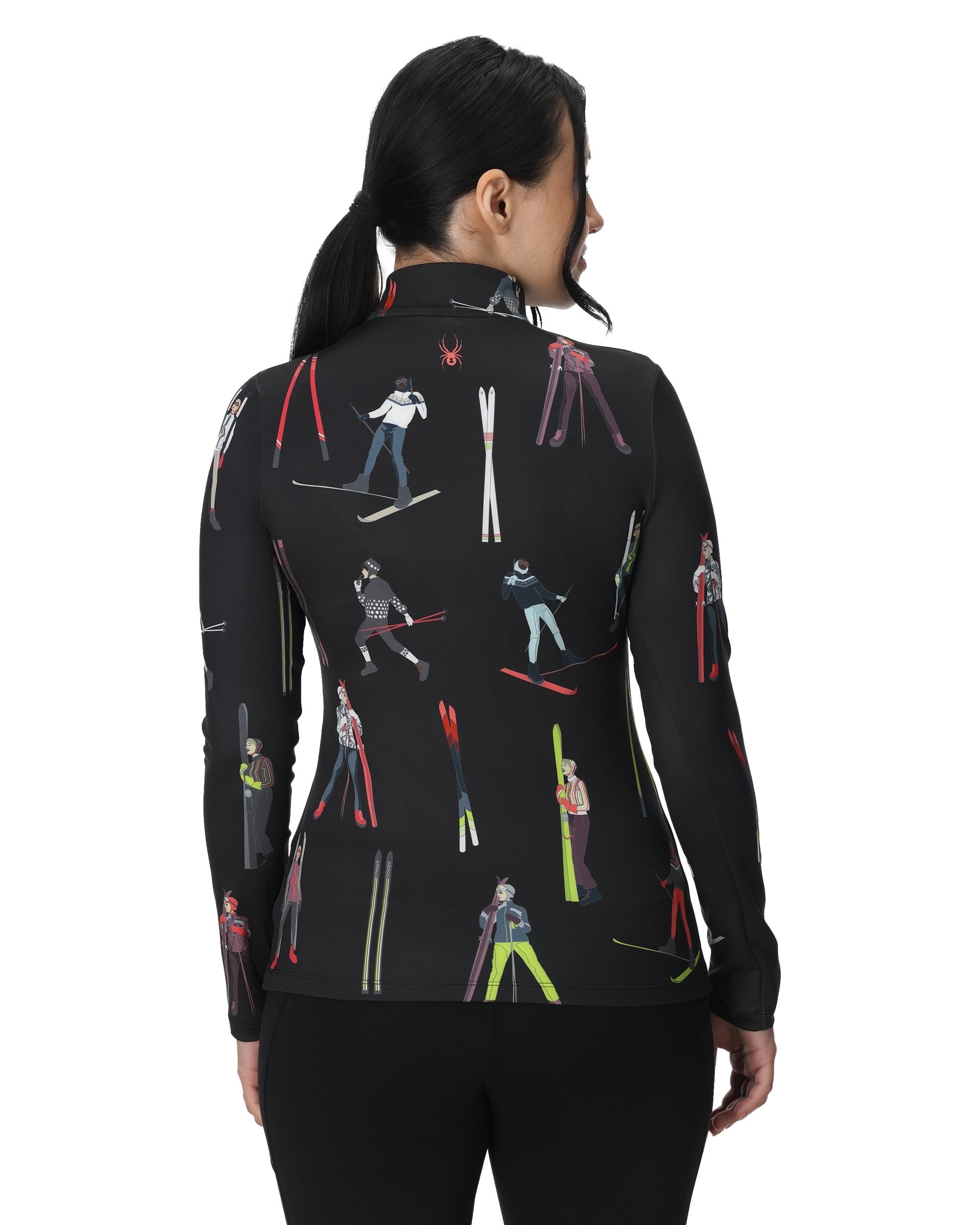 The custom Spyder prints on the Vivid 1/2 zip t-necks feature unique designs that can go with nearly any outfit. This stretch polyester/elastane t-neck is an ideal moisture-wicking layer while out on the mountain or as a light layer doing any sporty activity.